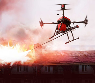 The high floors of the city are rising and the floors are getting higher and higher, which brings great challenges to fire rescue. The fire floor equipment on the floor is too high to quickly reach the control of the fire, and can only be allowed to ravage the fire, causing major fire accidents. In response to this problem, we have developed a dual fire-fighting drone that has a large load capacity, strong wind resistance, high throwing precision, and can fire fire extinguishers remotely in a complex fire weather environment. At the same time, it can also spray fire-extinguishing powder at close range. The double fire fighting drone is a special fire fighting drone for high-rise buildings